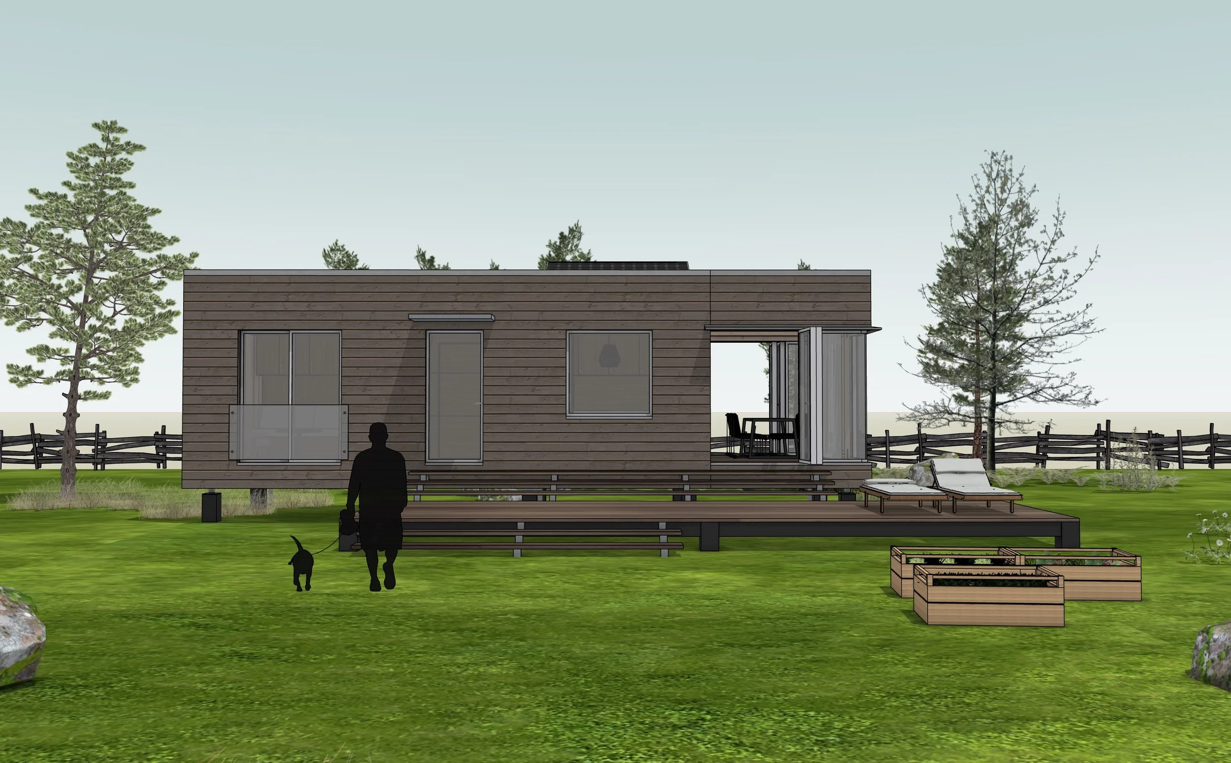 Huset leveres med eller uden terrasse (tilvalg) og bygges på enten beton- eller skruefundamenter.